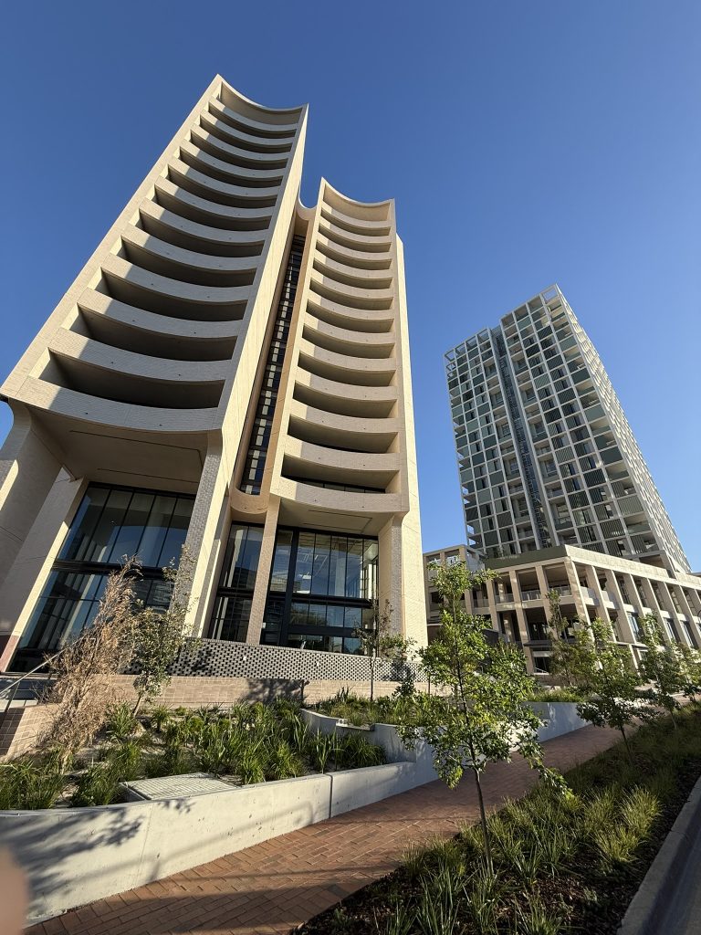 Building B was designed by Smart Design Studio and Building C by Bates Smart. The project also has a strong ESD ambition of targeting 100% renewable energy, fully electric and gas-free, and designed to consume 50% less electricity from the grid, reducing both carbon emissions and household costs. The development incorporates solar rooftops, EV charging infrastructure, low-emission building materials, and circular economy initiatives such as recycled water for toilets and onsite organic waste treatment.